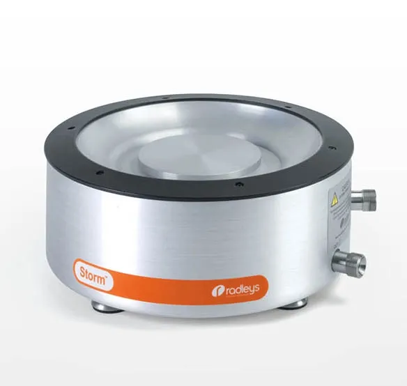 Теплообменный модуль Storm имеет увеличенные размеры и идеален для поддержания стабильной температуры при проведении синтезов с механическим перемешиванием реакционной массы, в ходе которых интенсивно выделяется или поглощается тепло. Модуль разработан для использования со станциями Carousel, Tornado и блоками Heat-On в комбинации с циркуляционным термостатом. Отличные теплопроводящие свойства корпуса из анодированного алюминия обеспечивают четкое реагирование на изменение температуры в системе.